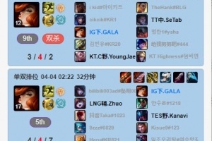 体育资讯4月4日讯 LPL第二赛段将迎来组内赛赛程,根据韩服排位统计小程序显示iG下路GALA近期Rank状态火热,十一场排位仅输掉一局。