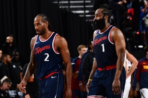 快船阵容中哈登35岁,莱昂纳德34岁,比尔32岁,巴图姆36岁,大洛37岁,博格丹32岁;篮网这边小将众多,特伦斯-曼恩28岁已是最大年龄。