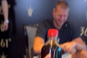 在今天的活动中,有球迷向约老师递可乐,不过被约老师笑着拒绝。