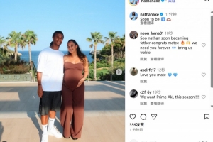 体育资讯7月17日讯 曼城球员阿克晒出了与妻子凯丽的合影,配文写道:“很快将成为四口之家。”