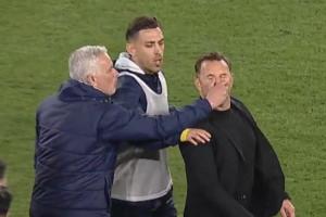 土耳其杯1/4决赛,费内巴切主场1-2不敌加拉塔萨雷,本场比赛出现多次争议判罚,赛后穆里尼奥朝着加拉塔萨雷教练布鲁克的鼻子捏了一把,引发巨大争议。