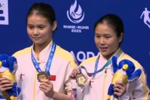 在女子双人十米台比赛中,何妍伟/卢为成功夺冠,德国选手和美国选手分别获得第二和第三,这枚金牌是中国代表团在本届大运会上的首枚金牌。