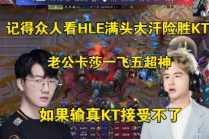 然而首局HLE满头大汗,KT拿下大龙但团战送关键团灭,HLE险胜第一局;二路解说记得等人都绷不住: