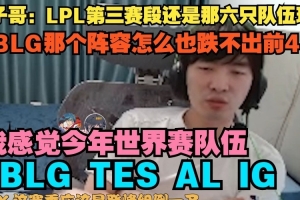 Cryin:LPL第三赛段还是那六只队伍玩嘛,BLG那个阵容怎么也跌不出前4,我感觉今年世界赛队伍BLG TES AL IG。
