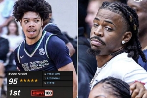 耐克青少年精英联赛(EYBL),后年状元大热泰兰-斯托克斯砍下22分9篮板带队取胜,莫兰特现场观战,现场还有很多球探。