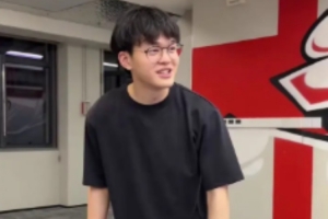 体育资讯7月19日讯 Xun分享与Wink打乒乓球视频:嘿!你小子。