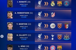 埃利奥特(22岁,身价3000万):热刺、西汉姆、纽卡