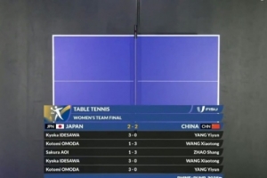 决赛中,中国队选手杨屹韵一人输掉两场比赛,且一局未得。日本队的出泽杏佳则是先后击败杨屹韵、王晓彤独得2分。