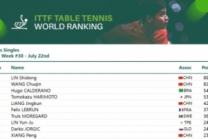 男单方面,林诗栋仍然排名第一,王楚钦排名第二,巴西选手雨果-卡尔德拉诺排名第三,张本智和排名第四,梁靖崑排名第五,小勒布伦排名第六,莫雷加德排名第七,林昀儒排名第八,达科-约奇克排名第九,向鹏排名第十。