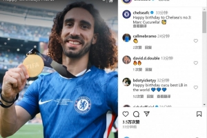 切尔西官方社媒晒出库库雷利亚展示世俱杯冠军奖牌的照片,配文:“祝切尔西3号球员库库雷利亚生日快乐!”