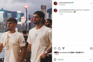 利物浦抵达中国香港参加季前赛,索博斯洛伊社媒晒出与科尔克兹的合照,配文:“大家好(Daai gaa hou)!很高兴见到你,中国香港!”