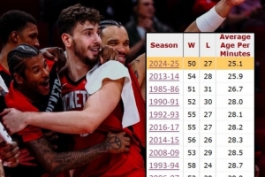 据统计,本赛季的火箭是队史最年轻的50+胜球队。
