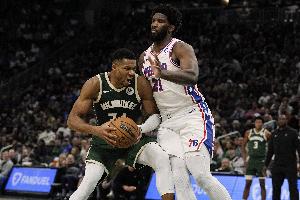 字母哥生涯至今场均砍下23.9分9.9篮板5.0助攻;恩比德生涯至今场均27.7分11.0篮板4.5助攻;东契奇生涯至今场均28.6分8.6篮板8.2助攻。