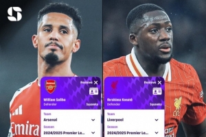 萨利巴(阿森纳):94.58%传球成功率,19.7次向前传球,1.9次抢断,62%争顶成功率,2.7次成功争顶,65.69%地面对抗成功率,3.5次解围,0.7次拦截,4.6次夺回球权