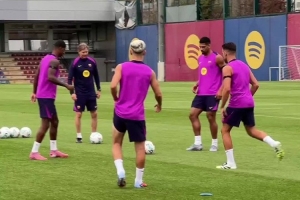 拉什福德租借加盟巴萨,参加球队今天的合练,巴萨社媒晒出训练视频,配文:“拉什福德已经熟悉了我们的抢圈训练。”