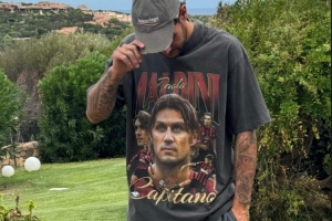 特奥今夏从米兰转会利雅得新月,目前正在度假,他在社交媒体上晒出身穿米兰传奇球星马尔蒂尼主题T恤的照片。