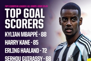 23-24赛季以来五大联赛球员进球榜(所有赛事):