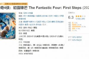 体育资讯7月26日讯 漫威《神奇4侠:初露锋芒》豆瓣开分6.3分,评分高于55%动作片,高于63%科幻片,不及DC近期上映的《超人》(6.7分)。