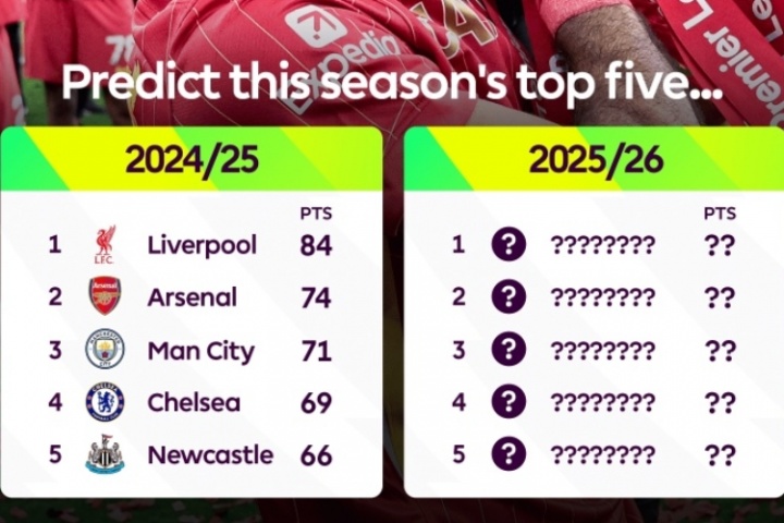 英超官方晒上赛季前五并发问:预测一下新赛季前五,你怎么看?