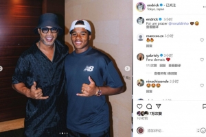 体育资讯7月26日讯 恩德里克更新社媒动态,晒出与巴西传奇球星罗纳尔迪尼奥的合照。
