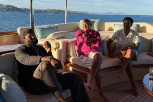 体育资讯7月27日讯 今日,约基奇等多位欧洲球员的经纪人Miško Ražnatović更新Instagram,晒出他在法国圣佩特罗与詹姆斯乘游艇出海度假的照片。