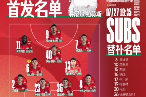下一篇: 中超联赛第18轮,武汉三镇客战浙江首发及替补球员名单出炉