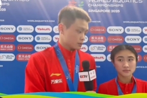 体育资讯7月28日讯 在昨天结束的游泳世锦赛跳水混双10米台决赛中,中国组合朱勇鑫/谢佩铃险胜对手0.06分夺冠。赛后,朱勇鑫/谢佩铃接受了记者采访。