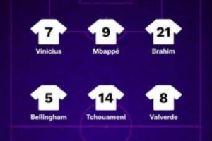 前锋:维尼修斯、姆巴佩、卜拉欣-迪亚斯