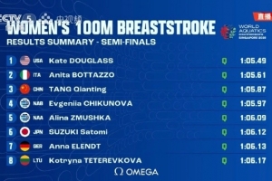 此外,该项目世界纪录保持者莉莉-金总排名第九,也无缘决赛。