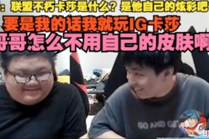 晴天:联盟不朽卡莎是什么?是他自己的炫彩吧?要是我的话我就玩IG卡莎,哥哥怎么不用自己的皮肤啊?