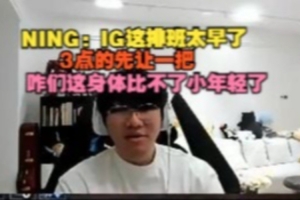 直播解说本局比赛的Ning调侃说道:这排班太早了,我觉得7点的IG能赢,3点的先让一把,咋们这身体比不了小年轻了。