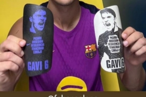 体育资讯7月29日讯 巴萨中场加维更新社交媒体,晒出自己的护腿板。