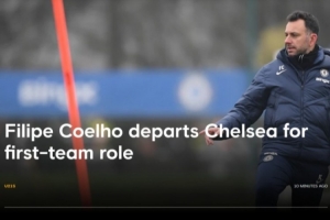 菲利佩-科埃略现年40岁,葡萄牙籍。他在2024年7月加盟切尔西,担任切尔西U21主教练,共计带队33场比赛,战绩19胜3平11负。上赛季科埃略带队在英超二级联赛取得第三名的成绩,但在附加赛1/4决赛中遗憾出局。