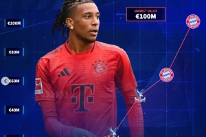 奥利塞出自切尔西青训,在2019年正式从雷丁出道,2020年身价涨到1500万欧元。加盟水晶宫后,他的身价在2022年稳定在2000万欧元浮动。但随着他在2023年开始持续高光,身价暴涨至5000万欧。而在加盟拜仁后,凭借其稳定而出色的发挥,当前已经涨至1亿欧元。