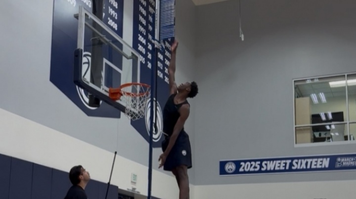 迪班萨,26届状元大热,身高2米06,臂展2米13,杨百翰大学给出的弹跳数据是42英寸(1米07)