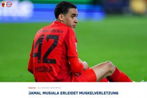 德甲第28轮,拜仁3-1击败奥格斯堡比赛第52分钟,穆西亚拉拼抢时拉伤,在队医搀扶下离场。