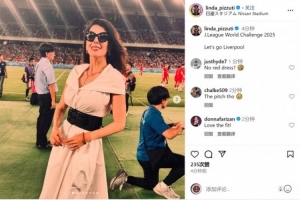 琳达来到日本,现场观看利物浦对阵横滨水手的热身赛(J联赛世界挑战赛),她在社交媒体上晒出照片,配文:“2025年J联赛世界挑战赛,加油利物浦。”