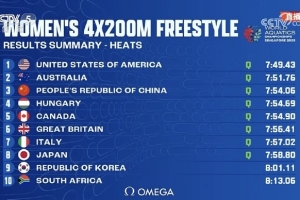 体育资讯7月31日讯 游泳世锦赛结束女子4x200米自由泳接力预赛争夺,中国队排名第三,晋级决赛。
