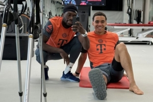 体育资讯7月31日讯 阿方索-戴维斯今日更新社交媒体,他发布了一绕与队友穆西亚拉一起进行康复训练的照片。