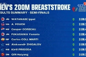 体育资讯7月31日讯 体育资讯7月31日讯 2025游泳世锦赛男子200米蛙泳半决赛,覃海洋第一组出发,2分09秒32获得小组第三;董志豪第二组出发,获得小组第八。最终覃海洋总成绩第8晋级决赛,董志豪无缘决赛。