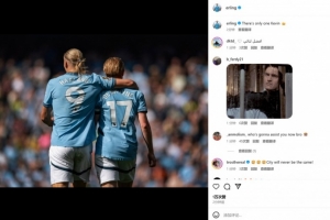 体育资讯4月5日讯 德布劳内宣布将在本赛季结束后离开曼城,哈兰德也在个人社媒晒出与德布劳内的合影,配文写道:“世上只有一个凯文👑”