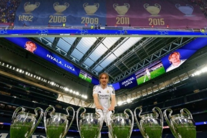 皇马大V球迷号晒图反击:莫德里奇生涯六夺欧冠冠军,而巴萨队史总计只有五座欧冠。
