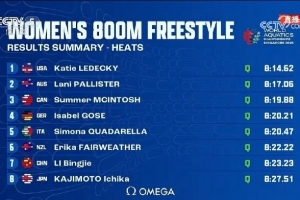 体育资讯8月1日讯 游泳世锦赛结束女子800米预赛争夺,中国选手李冰洁晋级决赛,杨佩琪排名第九,无缘晋级。