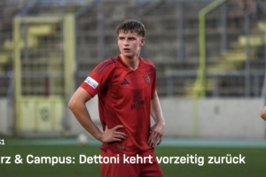 德托尼在上赛季冬窗租借加盟苏黎世草蜢,拜仁官方表示在经各方协商一致后,此次租借现已提前终止,这名中卫将即刻重返拜仁二队。