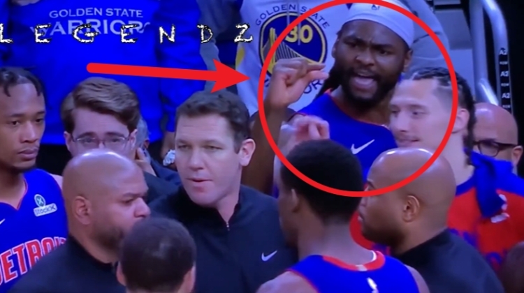 比赛第四节,库里经过活塞替补席前方,斯图尔特从板凳席站起推搡库里。