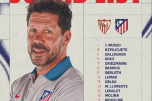 前锋:7-格列兹曼、9-索尔洛特、19-阿尔瓦雷斯、22-朱利亚诺-西蒙尼、40-贝莱德