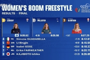 体育资讯8月2日讯 游泳世锦赛结束女子800米自由泳决赛争夺,美国选手莱德基夺冠,中国选手李冰洁排名第五。
