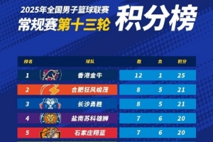 【积分榜】2025年NBL常规赛第13轮全部战罢。