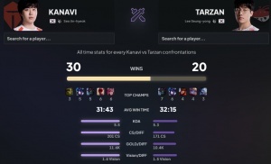 体育资讯4月6日讯 在昨日的LPL第二赛段组内赛上,TES以2-1的比分击败AL,而Kanavi作为曾经Tarzan的替补,两人职业生涯的对局目前已经来到50个小局,其中Kanavi拿下30个小局胜利,而Tarzan拿到20个小局胜利。