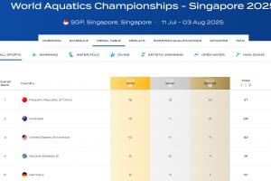 下一篇: 世锦赛游泳单项奖牌榜:中国2金第六、美国9金第一、澳大利亚第二